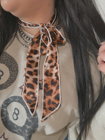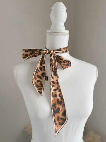 we took our popular satin-like printed twillys and took her up a notch. cheetah print twilly with a rope like trim.